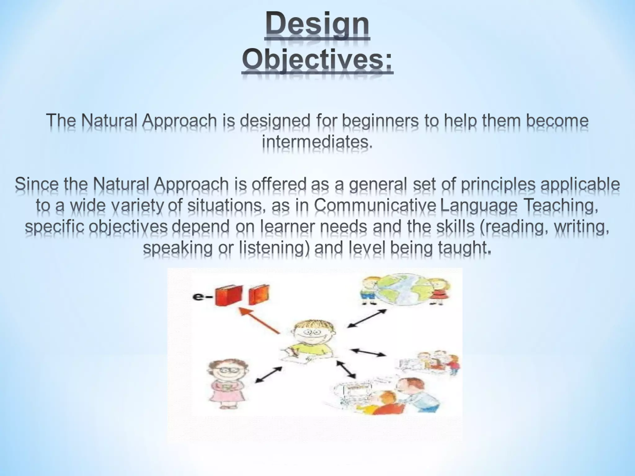 This document summarizes the key aspects of the Natural Approach developed by Stephen Krashen and Tracy Terrell. The Natural Approach focuses on meaningful communication through comprehensible input in the target language. It emphasizes acquiring language through exposure rather than conscious learning of grammar rules. The teacher acts as a facilitator who creates a low-anxiety environment rich with activities to promote comprehension and communication.