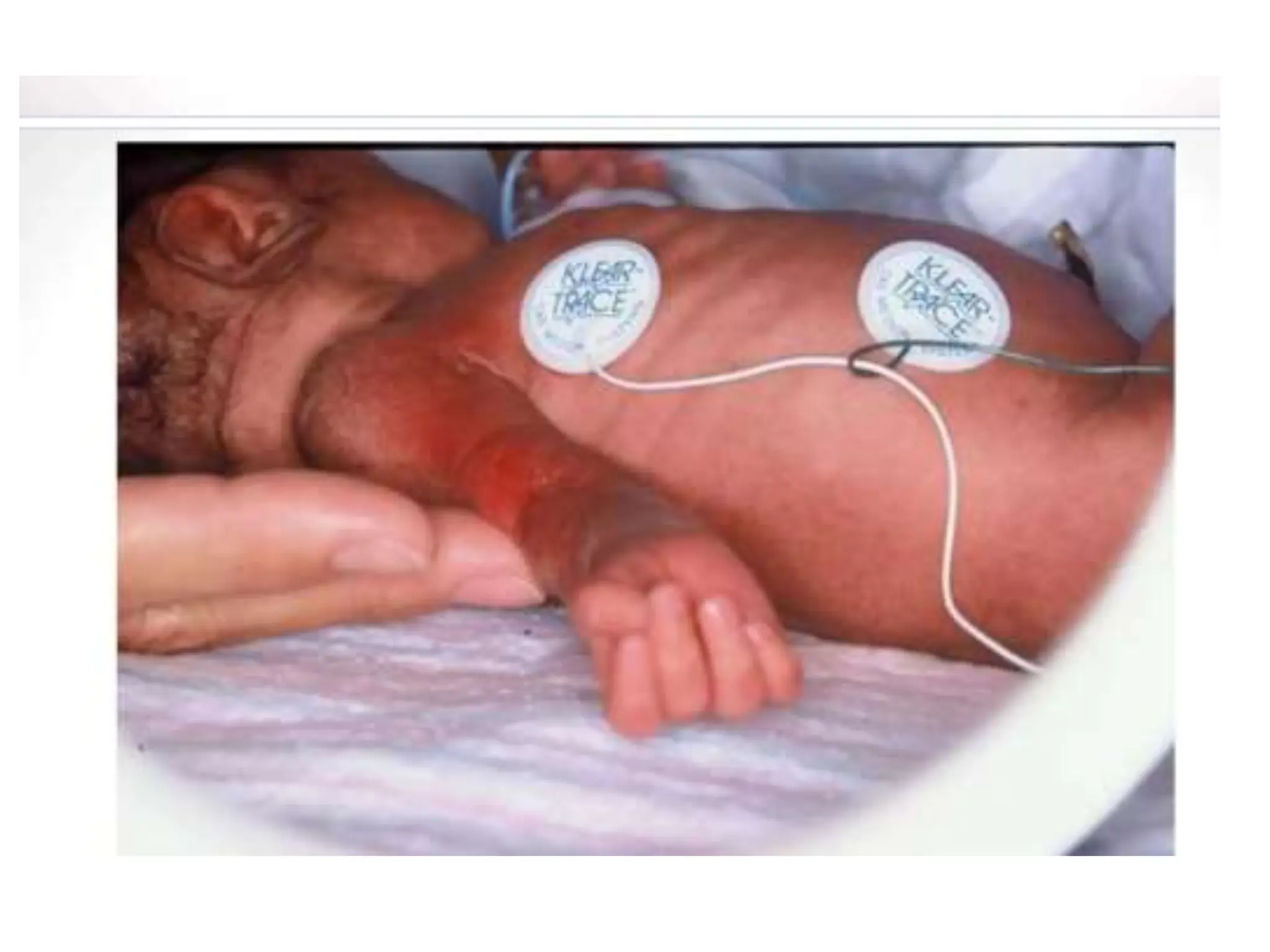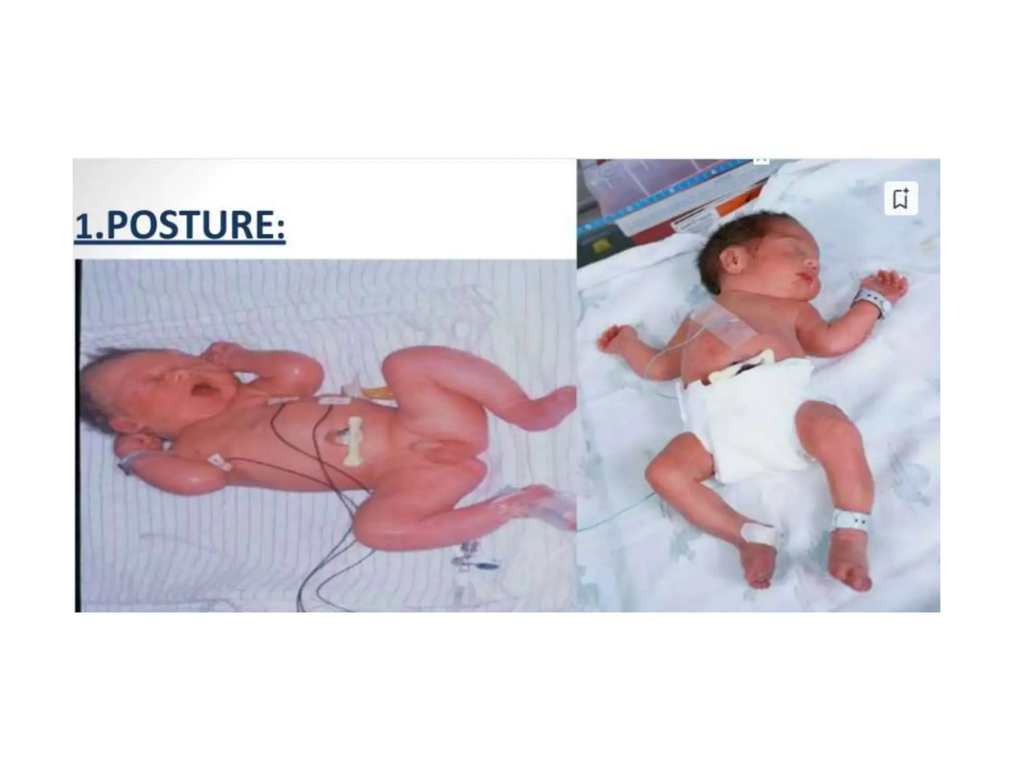 A newborn infant is being assessed using the Ballard scoring system to determine physical maturity. The assessment examines physical features like skin texture, presence of lanugo hair, plantar surface ridges, breast buds, and ear cartilage to assign a gestational age score and determine if the infant is premature or full-term.