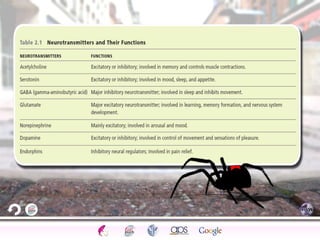 2. How neurons use neurotransmitters to communicate via synaptic transmission between neurons in either an excitatory or inhibitory manner.