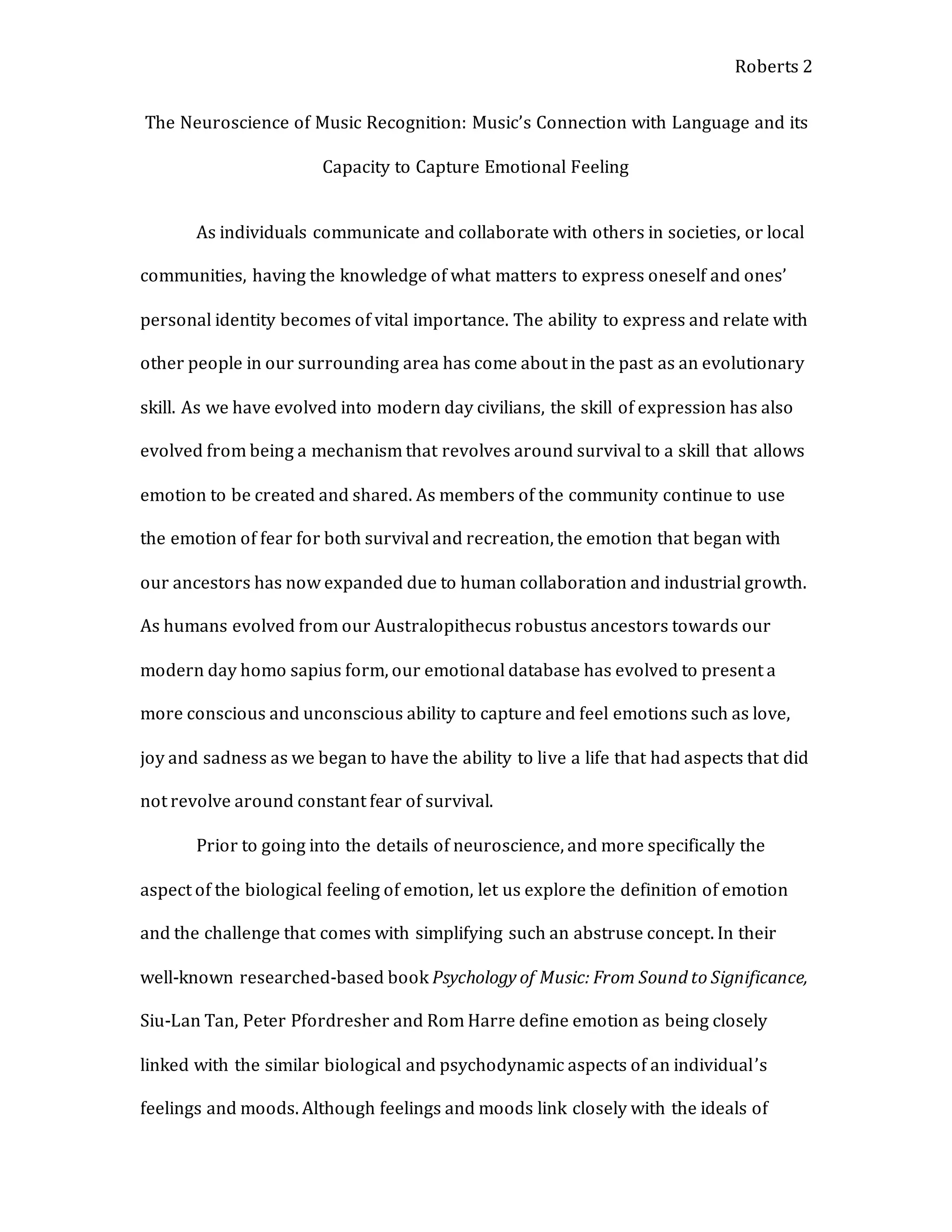 This document discusses research on the neurological basis for how music elicits emotional responses. It describes how music recognition activates brain regions involved in emotional processing like the amygdala and orbitofrontal cortex. Studies using fMRI and ERP technologies found that processing musical syntax activates similar brain regions as language like Broca's area. This suggests music shares integrative properties with language and both tap into our innate capacity for emotional expression and communication.