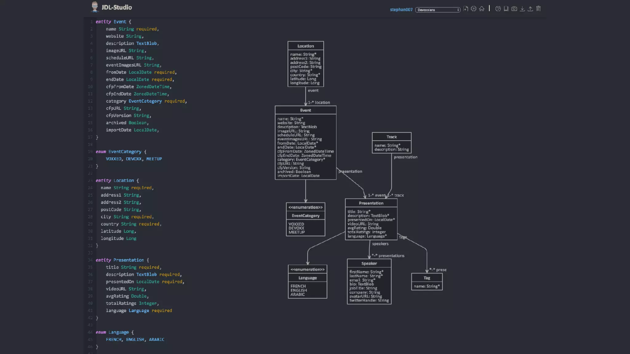 The document outlines the development and deployment of new Voxxed websites utilizing JHipster, Angular, and GitLab. It discusses objectives, continuous integration, and the backend call for papers app, along with various technical aspects such as microservices and deployment configuration. The next steps for the project are also briefly mentioned.