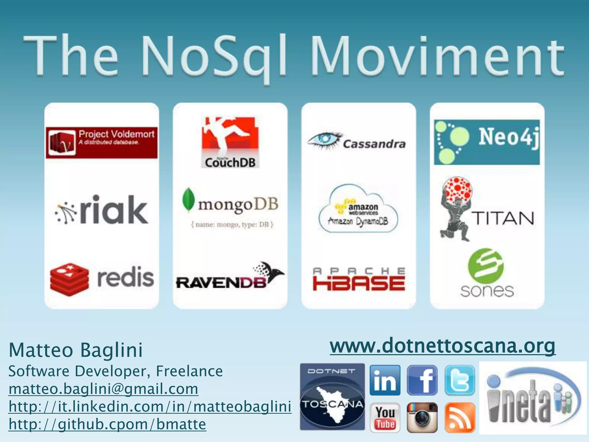 The document discusses the pros and cons of relational databases (RDBMS) versus NoSQL databases for modern web application requirements. It outlines some key characteristics of RDBMS like SQL queries and transactions, and notes they may not be the best fit for requirements like large heterogeneous datasets, high user volumes, and dynamic needs. The document then categorizes different NoSQL database types and provides examples for each, concluding that a polyglot or multi-model approach may be most suitable.