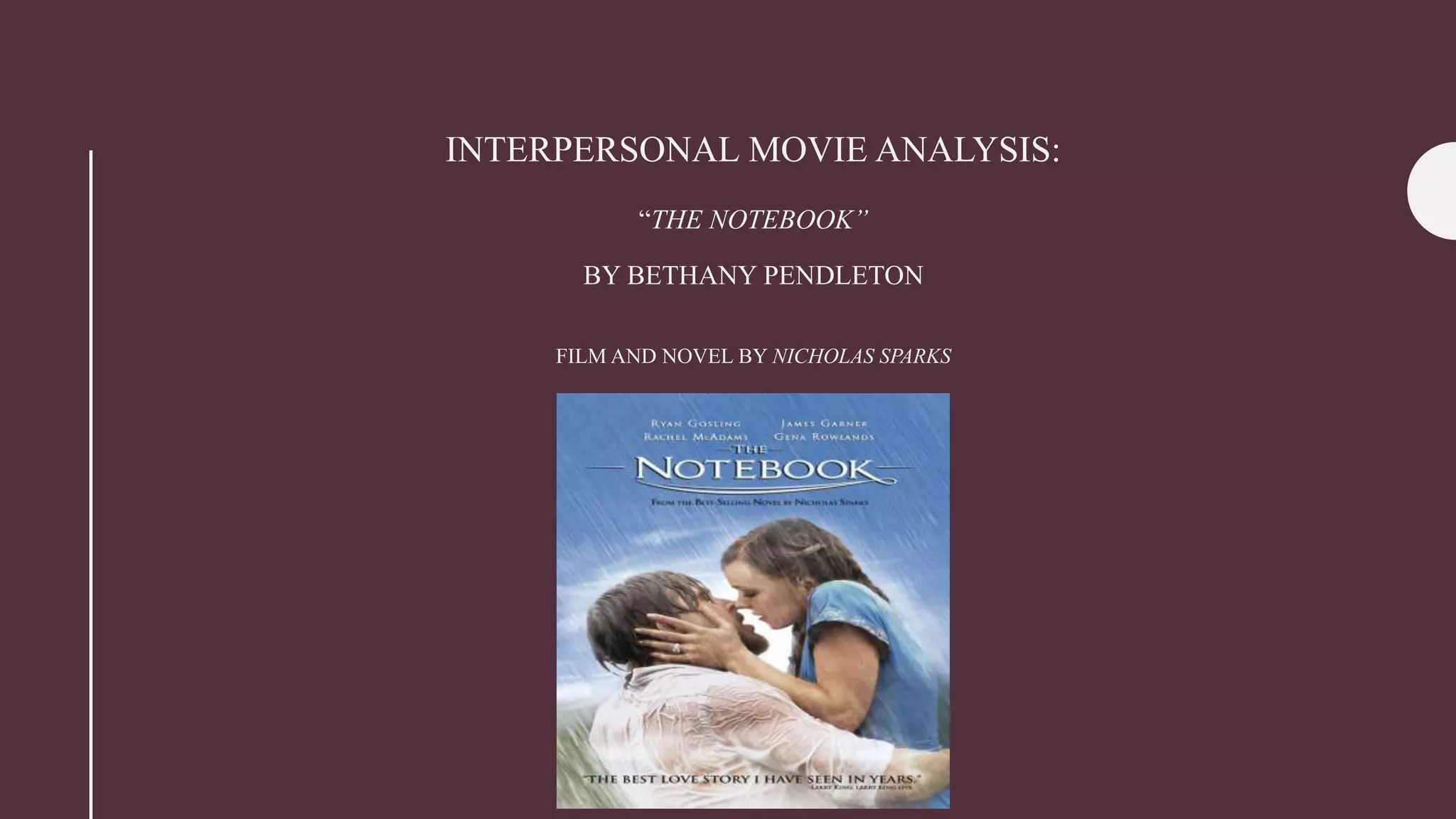 Noah Calhoun falls in love with Allie Hamilton, a wealthy summer visitor. They have a passionate romance that summer, but Allie leaves to attend school. Noah writes her letters daily for a year, but Allie's mother keeps them from her, forcing Allie to move on. She gets engaged to another man but realizes she still loves Noah. They reunite and rekindle their romance, though Noah now has a life with another woman. The film depicts their enduring love through flashbacks and Noah caring for Alzheimer's-stricken Allie by retelling their story daily.