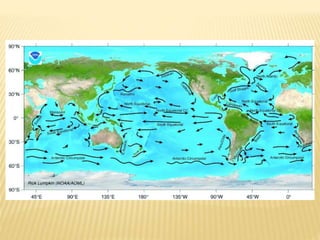- Ocean water movement includes surface waves, tides from gravitational forces, and large-scale deep and shallow horizontal currents driven by density and rotation.