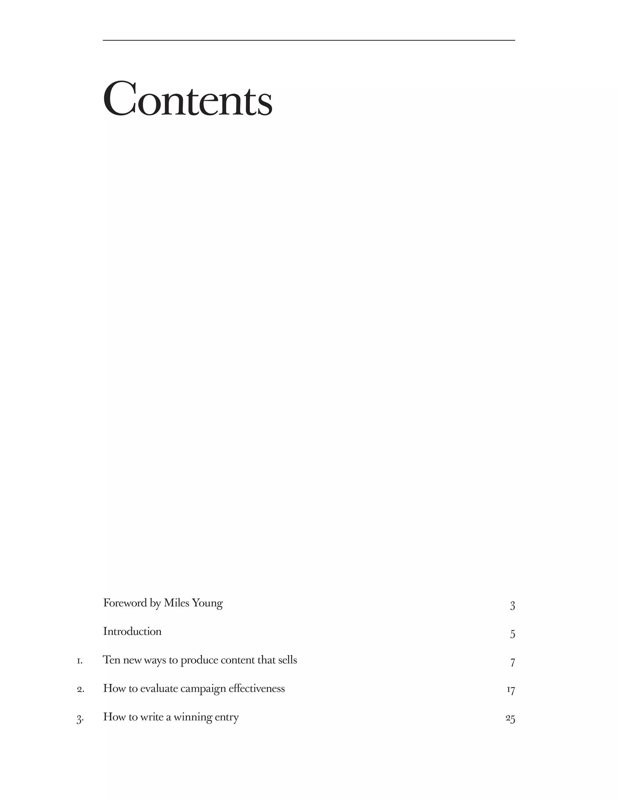 This document provides a summary of ten new ways to produce content that effectively sells products and services. It begins by stating that highly creative campaigns are shown to be 11 times more effective at increasing sales than less creative campaigns. It then outlines additional factors that lead to more effective campaigns, including setting hard objectives focused on sales or profits; aiming to increase a brand's fame; developing a big idea that engages consumers; prioritizing growing a brand's penetration; leveraging television advertising; appealing to consumers' emotions; integrating multiple communication channels; and creating interesting content that generates additional exposure through social media and PR. The document emphasizes that the most important factors are producing highly creative content and setting clear, measurable business objectives.