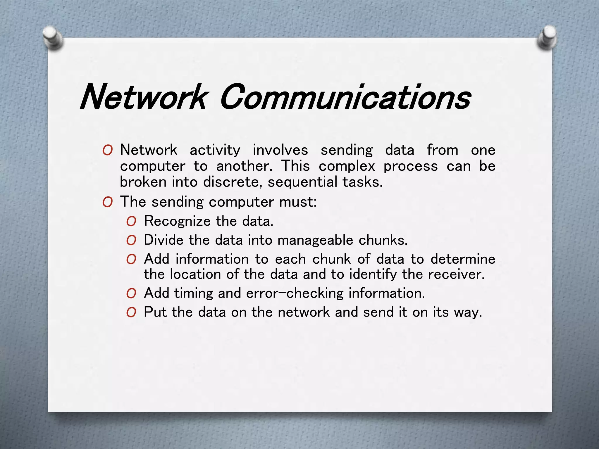 The document describes the OSI reference model, which defines 7 layers for network communication: physical, data link, network, transport, session, presentation, and application. Each layer performs discrete tasks to prepare data for transmission across a network, such as adding addressing, error checking, and formatting. Data moves down and then up the layers of the sending and receiving computers respectively. The layers work together to reliably transmit packets of data between applications running on different devices.