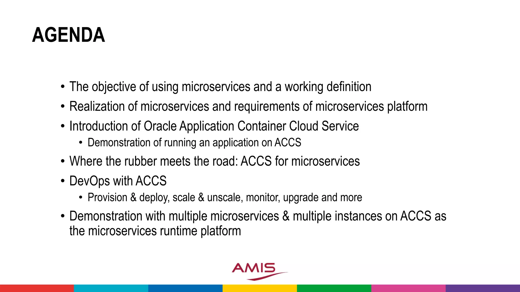 The document outlines the Oracle Application Container Cloud Service (ACCS) as a microservices platform designed for flexibility and scalability. It details the architecture, deployment, and operational management of microservices, emphasizing their stateless and decoupled nature, alongside the necessary features for effective event-driven communication and integration. ACCS facilitates continuous deployment and independent evolution of microservices through automated operations and service bindings with various Oracle cloud services.