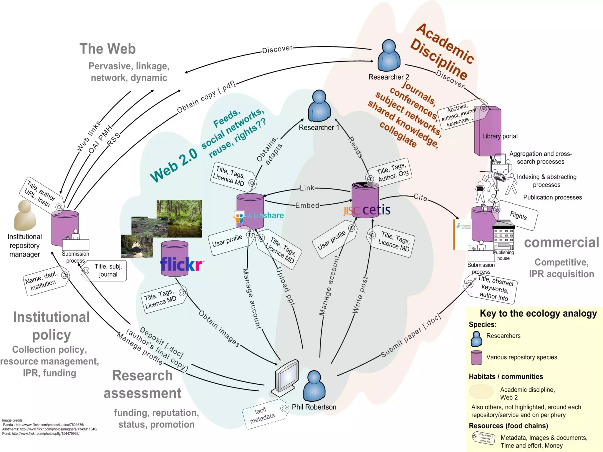The document discusses the concept of a repository ecosystem in ecology, highlighting interactions between various entities such as users, repositories, and services. It emphasizes the importance of the Journaltocs API in this ecosystem and suggests that its implementation involves collaboration with developers and addressing further requirements. Overall, understanding these interactions can enhance the efficiency of information environments.