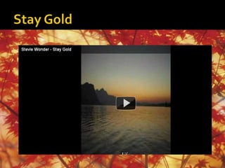 This unit plan focuses on studying the novel The Outsiders by S.E. Hinton. Students will read the novel and analyze key elements like plot, characters, themes, and language. Activities include identifying characters, comparing Socs and Greasers, exploring relationships between characters, and examining how characters change. Students will also write opinions, creatively explore themes, and relate issues in the text to their own lives. The unit aims to develop skills like using language, thinking critically, and relating to others.