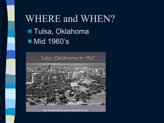 The Outsiders by S.E. Hinton is set in Tulsa, Oklahoma in the mid-1960s and explores the rivalry between two social groups, the Greasers and Socs. The Greasers are working class youth from the wrong side of town, known for greased back hair, jeans, leather jackets and rolled up t-shirt sleeves. In contrast, the Socs are rich kids from the right side of town who think they are better than others and drive corvettes while wearing madras. Hinton was inspired to write the novel at age 15 because she enjoyed writing and wanted to depict realistic teenage experiences that differed from typical books at the time.