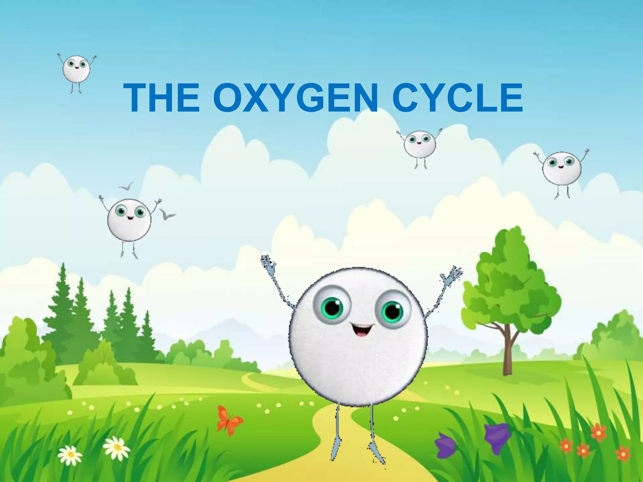 Oxygen makes up 21% of the atmosphere and is used by all living things through respiration and photosynthesis. During respiration, glucose and oxygen are used to produce energy, carbon dioxide, and water. In photosynthesis, plants use carbon dioxide, water, and sunlight to produce oxygen and glucose. This cycle of oxygen production and consumption between organisms through respiration and photosynthesis is essential for life.