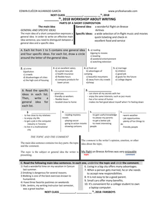 The document provides instructions for writing paragraphs and short compositions. It discusses the main components of a paragraph including the topic, main idea, body, and conclusion. It also explains the parts of a short composition, with the main idea presented in the first paragraph and the conclusion in the last. The document provides examples and exercises to help understand how to identify topics, main ideas, supporting details, and write effective conclusions.