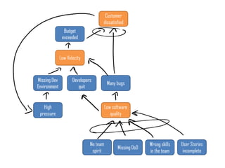 The document discusses the concept of a systemic scrum master and emphasizes the importance of team passion and strong vision in achieving success. It highlights the need for system thinking, safety, trust, and a shared understanding among team members. Additionally, it includes quotes and references to visual tools like causal loop diagrams and current reality trees, while encouraging a focus on adaptability and collective strength.