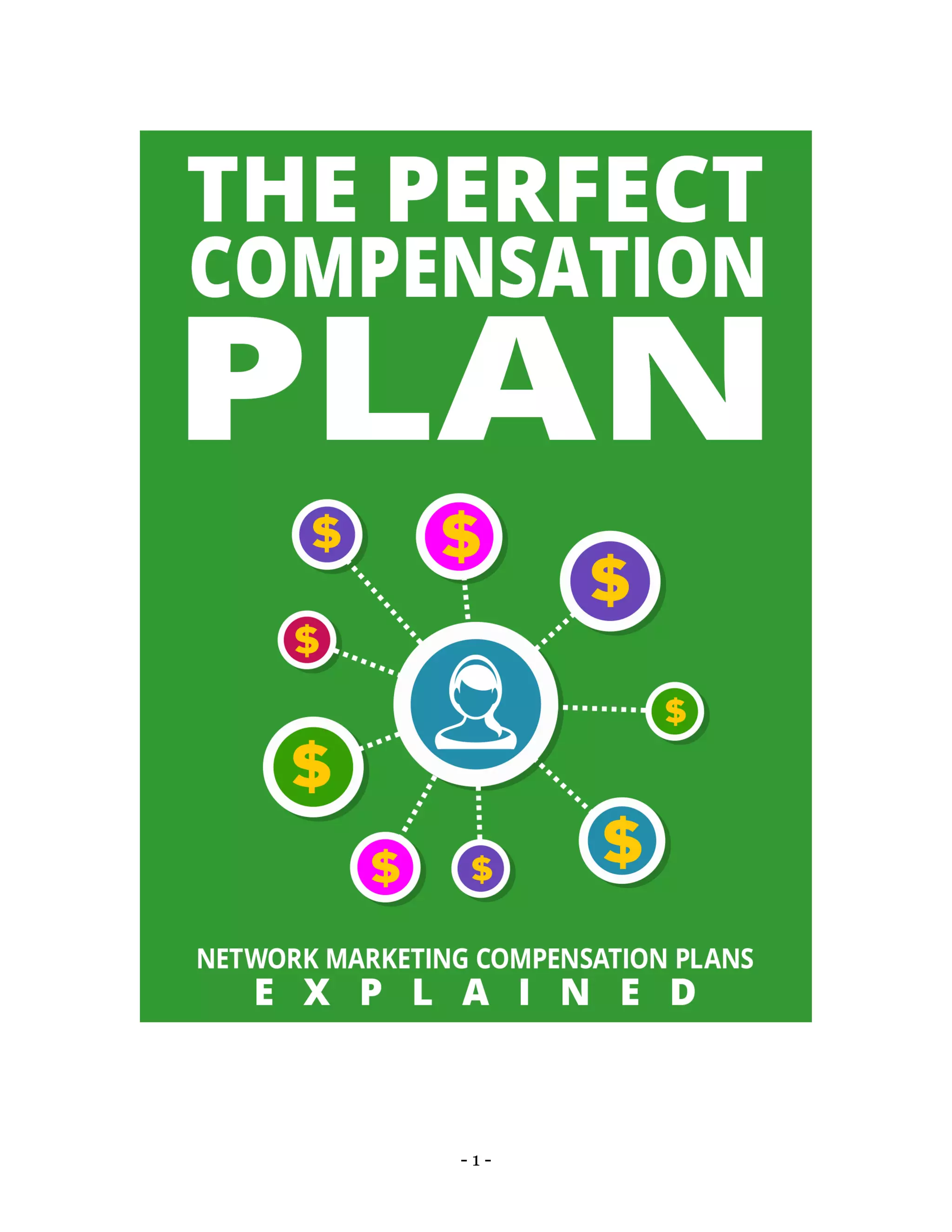 This document discusses various types of network marketing compensation plans, emphasizing their importance in motivating individuals to participate in business ventures. It outlines different compensation structures, including unilevel, stairstep breakaway, matrix, and binary plans, detailing how commissions are calculated and highlighting their advantages and drawbacks. Additionally, it stresses the necessity of well-designed compensation plans for attracting and retaining loyal participants in business efforts.