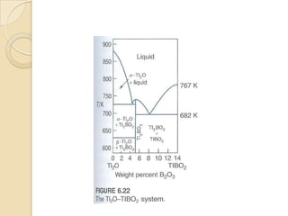 The document discusses the phase rule, introduced by Gibbs in 1875, which helps understand the equilibrium between phases in relation to temperature, pressure, and concentration. It explains key concepts such as phases, components, degrees of freedom, and their applications in materials science, along with examples and limitations of the phase rule. The document also details phase diagrams for various systems, including one-component and binary systems, and provides insights into phase behavior under different conditions.