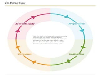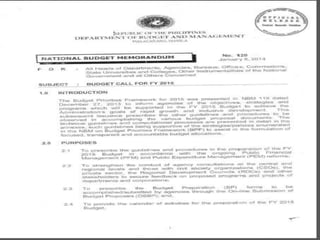 This document outlines the Philippine government's budget preparation process which includes: