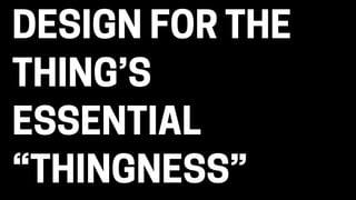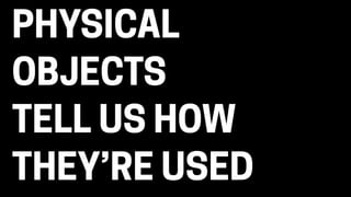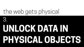 The document discusses the evolution and future of physical interfaces that connect the digital and physical worlds, emphasizing the importance of thoughtful design to enhance user interaction. It explores various applications of technology in everyday objects, such as notifications and data access via physical interfaces, and highlights the potential ethical concerns that arise from increased connectivity. The author encourages a focus on improving human experiences rather than complicating them with technology.