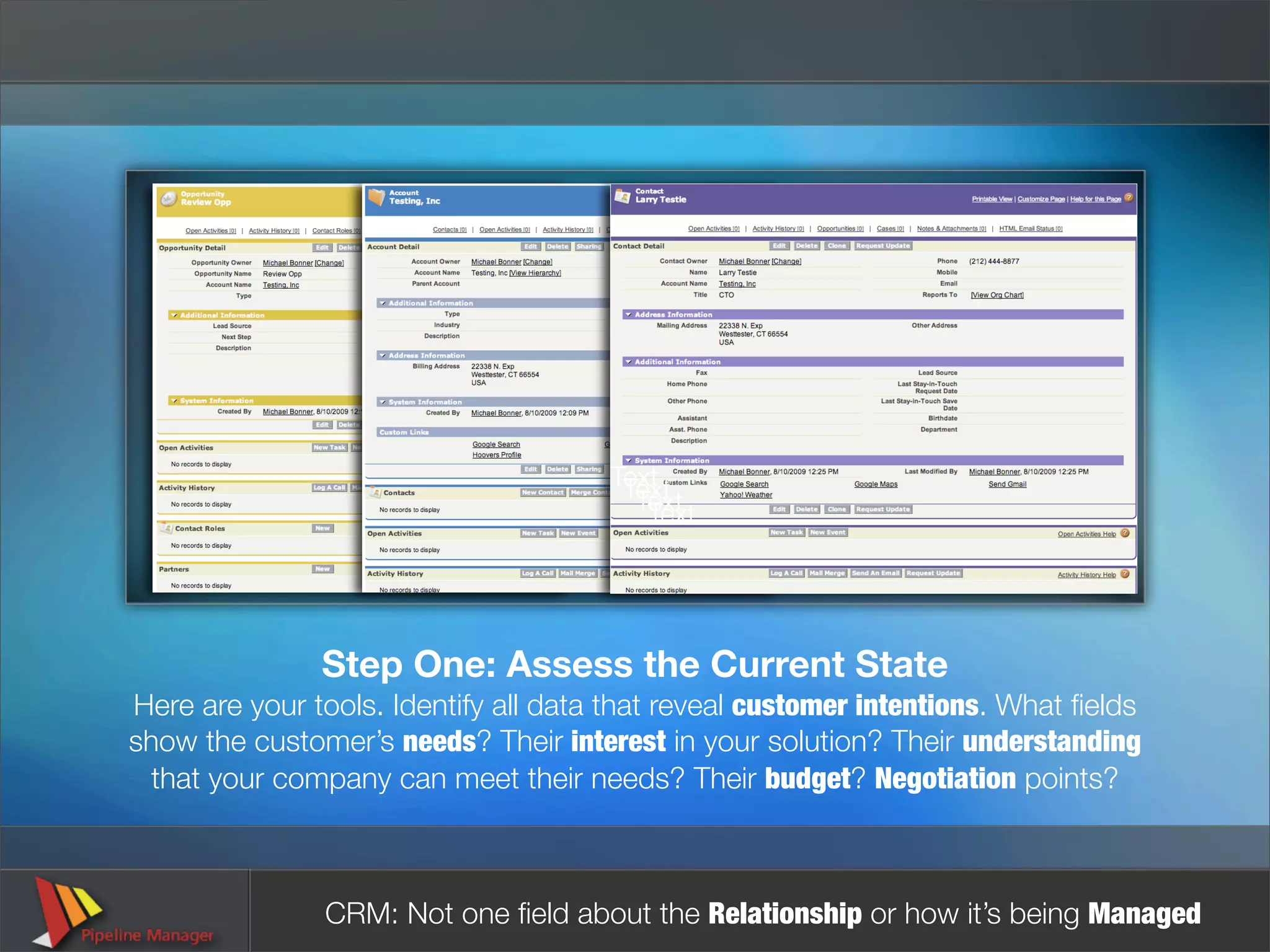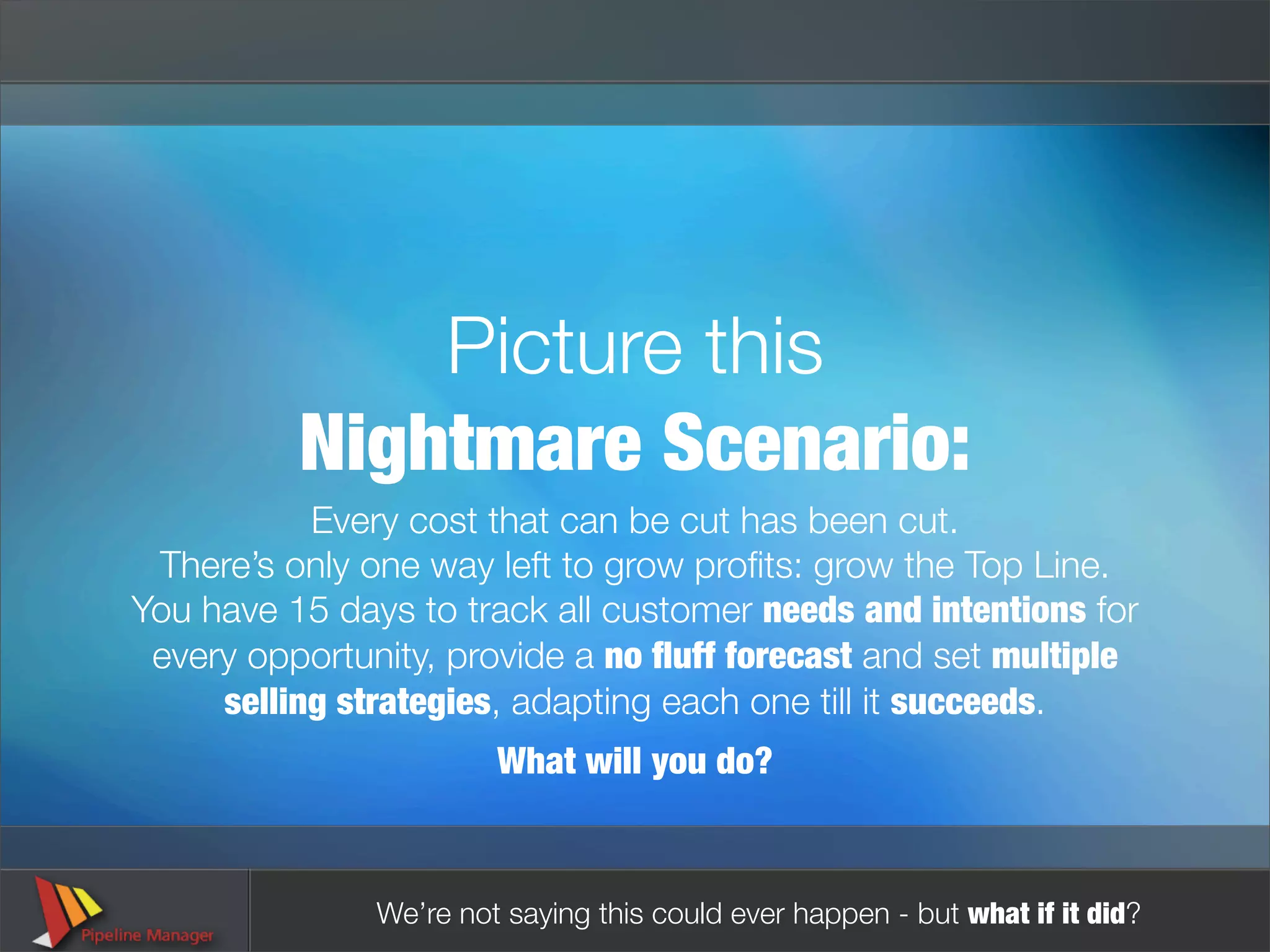 This document describes a hypothetical "nightmare scenario" where a company has only 15 days to analyze customer data, set selling strategies, and forecast opportunities in order to grow profits. It then outlines 8 steps the company could take to assess their current CRM capabilities, define an ideal state with improved visibility and prioritization of key customer data, streamline unused fields and processes, capture necessary information at each stage of the sales process, and ultimately implement a new tool that integrates fully with their existing Salesforce platform to help sales teams more effectively manage opportunities and relationships. The document suggests this approach is what should be expected of CRM systems all along to best support sales organizations.