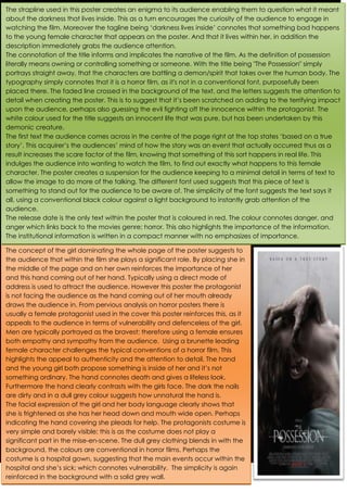 The poster summarizes the key elements of the horror film "The Possession" in 3 sentences:
