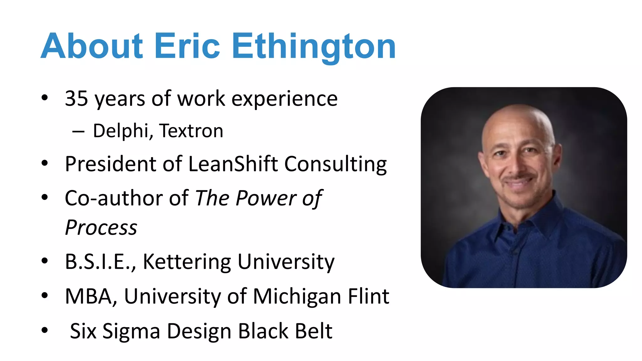 The webinar discusses the role of the system architect. The system architect helps organizations implement process improvement frameworks like the 6CON model to break rework cycles. As resident visionary and program manager, the system architect develops the physical value stream, manages the new way of working, and mentors and coaches others. When getting started, a system architect should align stakeholders around the need for change, start with meaningful pilot projects, demand organizational stability, and make help truly helpful through situational coaching. The goal is for organizations to achieve short lead times, built-in quality, flexibility and simplicity through a repeatable process improvement approach.