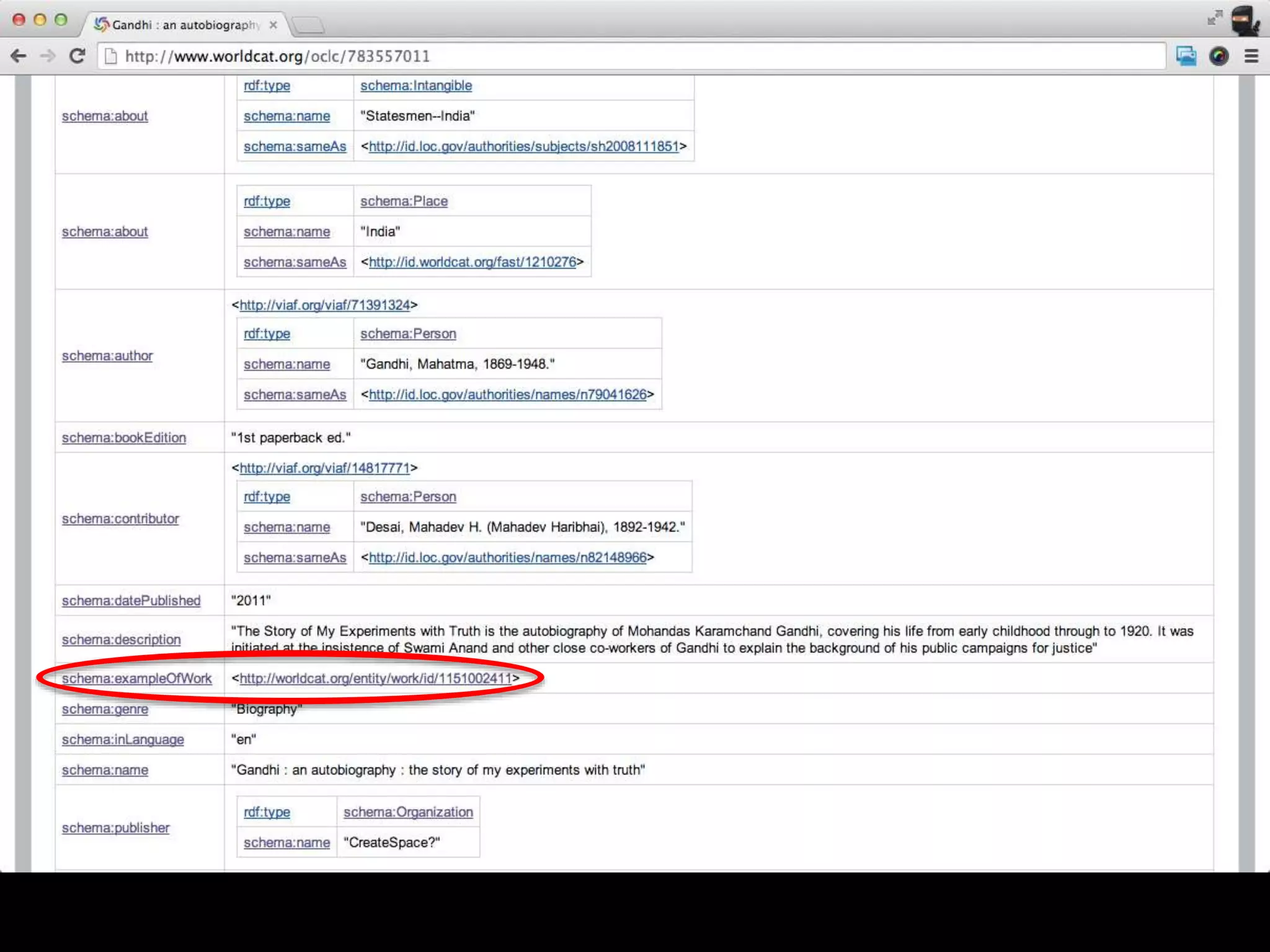 The document discusses OCLC's efforts to share library data as linked open data on the web. It describes OCLC releasing WorldCat data including 311 million records as linked data, using schemas like Schema.org and linking to other sources like VIAF. It also discusses the release of 197 million linked data work descriptions from WorldCat in April 2014. The goal is to make library data part of the web by giving search engines and users what they want, like structured data at web scale with identifiers and links.