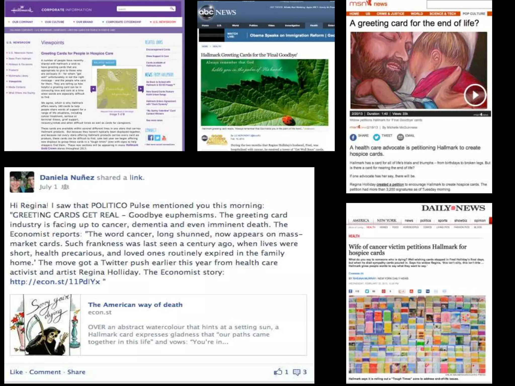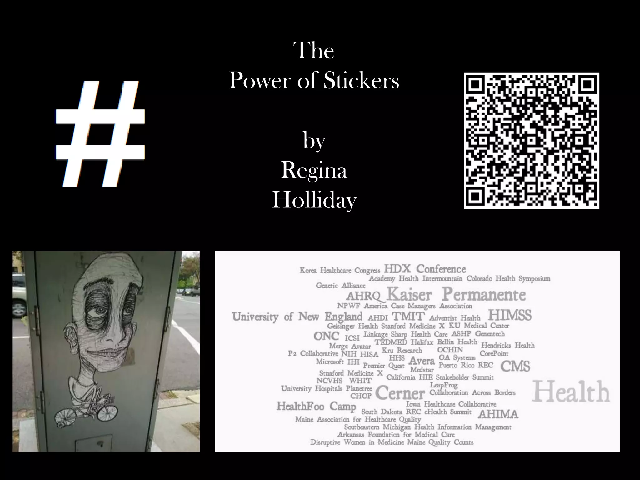 This document summarizes Regina Holliday's experience advocating for patient data access and empowerment through her artwork. It describes how after her husband Fred's misdiagnosis and death from cancer, she began painting murals sharing his medical record and story to raise awareness. This led to meeting other advocates online who provided more support than Fred's local hospital. The document then discusses Holliday's continued advocacy work through paintings, social media campaigns, and her sons' involvement in sharing patient stories and diabetes care through their own artwork.