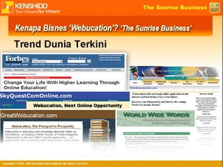 This document describes an online tutoring program called Score A that provides 24/7 tuition for students from Standard 1 to Form 3. It offers lessons, exercises, mock exams and other resources for various subjects according to the Malaysian education system syllabus. The program aims to improve students' academic performance through its "output learning" approach. Testimonials from students and parents show many have achieved excellent exam results such as straight As after using Score A. The document also discusses the program's affordable subscription costs and provides information about becoming an educational partner or entrepreneur through its business packages.