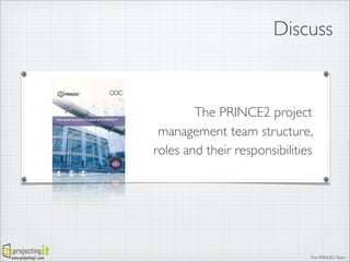 This document provides an overview of the PRINCE2 project management methodology, including descriptions of key roles and responsibilities within the PRINCE2 structure. It introduces the Executive, Senior User, Senior Supplier, and their responsibilities in directing and managing the project. It also outlines the core PRINCE2 processes of people, processes, and products that bring the methodology together.