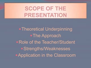 The document explores the process approach to writing, highlighting its theoretical foundations and the roles of teachers and students. It emphasizes writing as a complex cognitive process with distinct stages: prewriting, writing, revising, and evaluation, while discussing its strengths and weaknesses in the classroom. The approach encourages student expression and collaboration but can be time-consuming and challenging for those unfamiliar with it.
