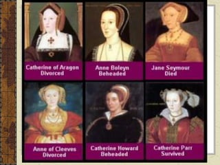 The document summarizes key events and figures in the Protestant Reformation from the 14th to 16th centuries. It discusses early reformers like John Wycliffe, Jan Hus, and Erasmus who questioned the authority of the Catholic Church. The printing press allowed books to reach a wider audience, aiding the spread of new ideas. Martin Luther's 95 Theses criticized the sale of indulgences by the Catholic Church and sparked the Reformation. Other reformers like Ulrich Zwingli, John Calvin, and John Knox established new Christian denominations. The document also outlines how King Henry VIII established the Church of England independent of papal authority.