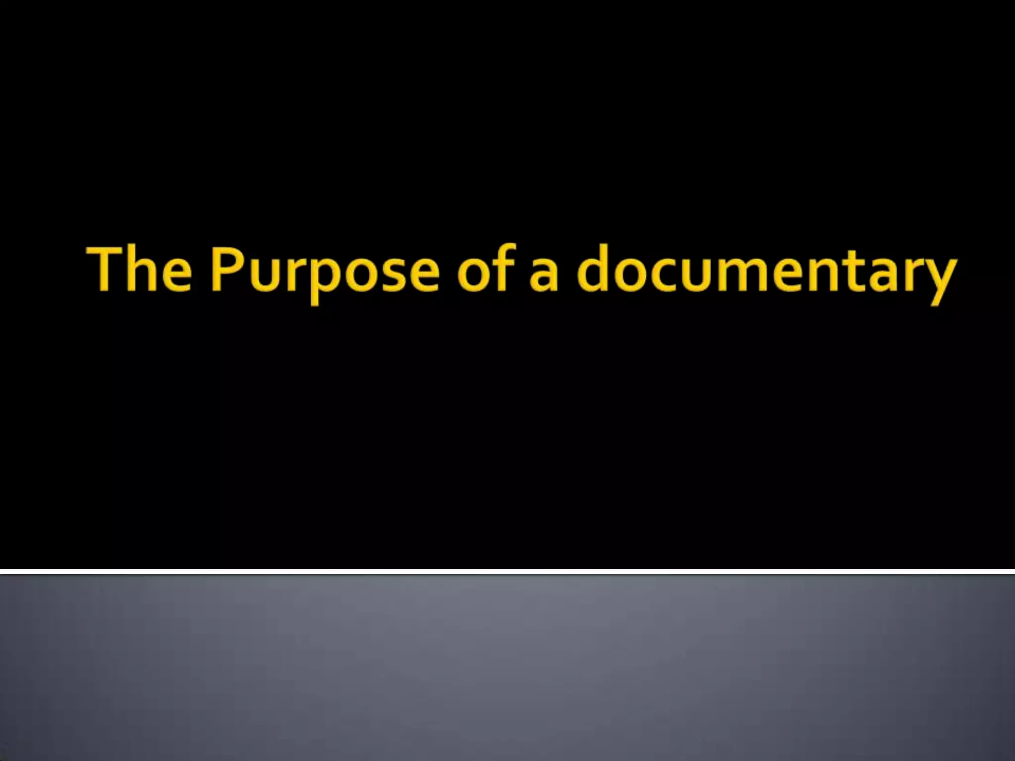 Documentaries aim to document and report on real events using actual footage or reconstructions, with a narrator occasionally providing context. The term was coined in 1926 to describe creative treatments of reality that use facts to make socially critical arguments and invite audiences to draw their own conclusions, rather than just presenting facts.