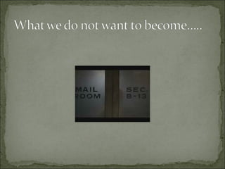 Our mission is to enrich lives through fostering relationships, passion, growth, and fun. We aim to create an environment that celebrates these values. To fulfill our potential, we must get our people processes right through clear communication, continuous learning, and ensuring all staff are growing in their roles. We will define success based on feedback from all stakeholders and key metrics like employee retention, profitability, and providing world-class experiences for clients and internal staff.