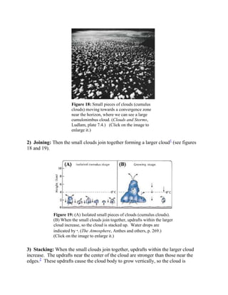 The document discusses scientific discoveries about cloud formation and rain production that are mentioned in the Quran. It describes the process by which small clouds are pushed together by wind, join to form larger clouds, and stack up due to updrafts, then produce rain. It notes that the Quran accurately described this process of cloud movement and stacking over 14 centuries ago. It also discusses how hail plays a role in electrifying clouds and producing lightning, as stated in the Quran. Modern meteorological studies have only recently understood these details through advanced equipment and research.