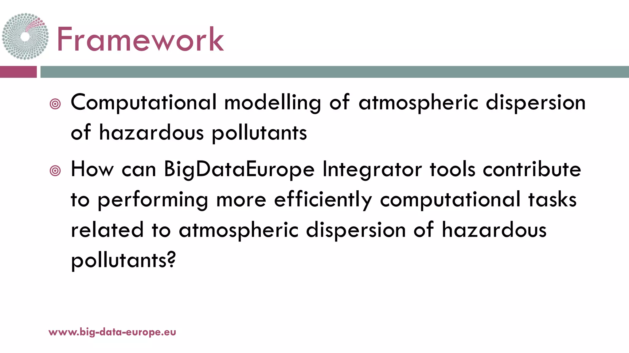 The document outlines the methodology and goals of the BDE 2nd SC5 pilot project 'Demokritos', which focuses on computational modeling of atmospheric dispersion of hazardous pollutants. It discusses the integration of big data tools to efficiently estimate pollutant sources during emergencies, particularly in cases of nuclear accidents, by utilizing meteorological data and dispersion models. The project aims to create a framework that allows for pre-calculation and storage of various dispersion scenarios to rapidly identify emission sources when necessary.