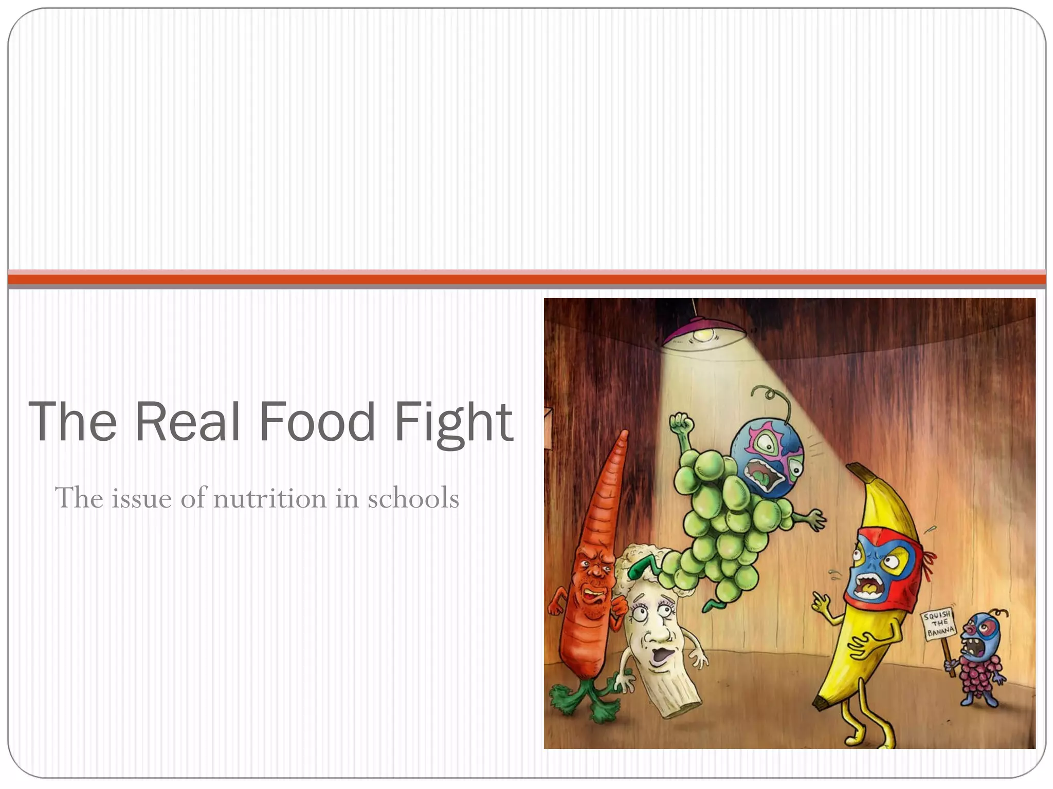 The document discusses issues with nutrition in schools and argues for improving school lunch programs. It notes that unhealthy food choices in schools contribute to childhood obesity and poor academic performance. The document advocates offering students healthier options like fresh foods instead of fried foods and sugary snacks. Studies cited found that schools that implemented healthier eating saw benefits like better test scores, increased attendance, and fewer behavioral issues.