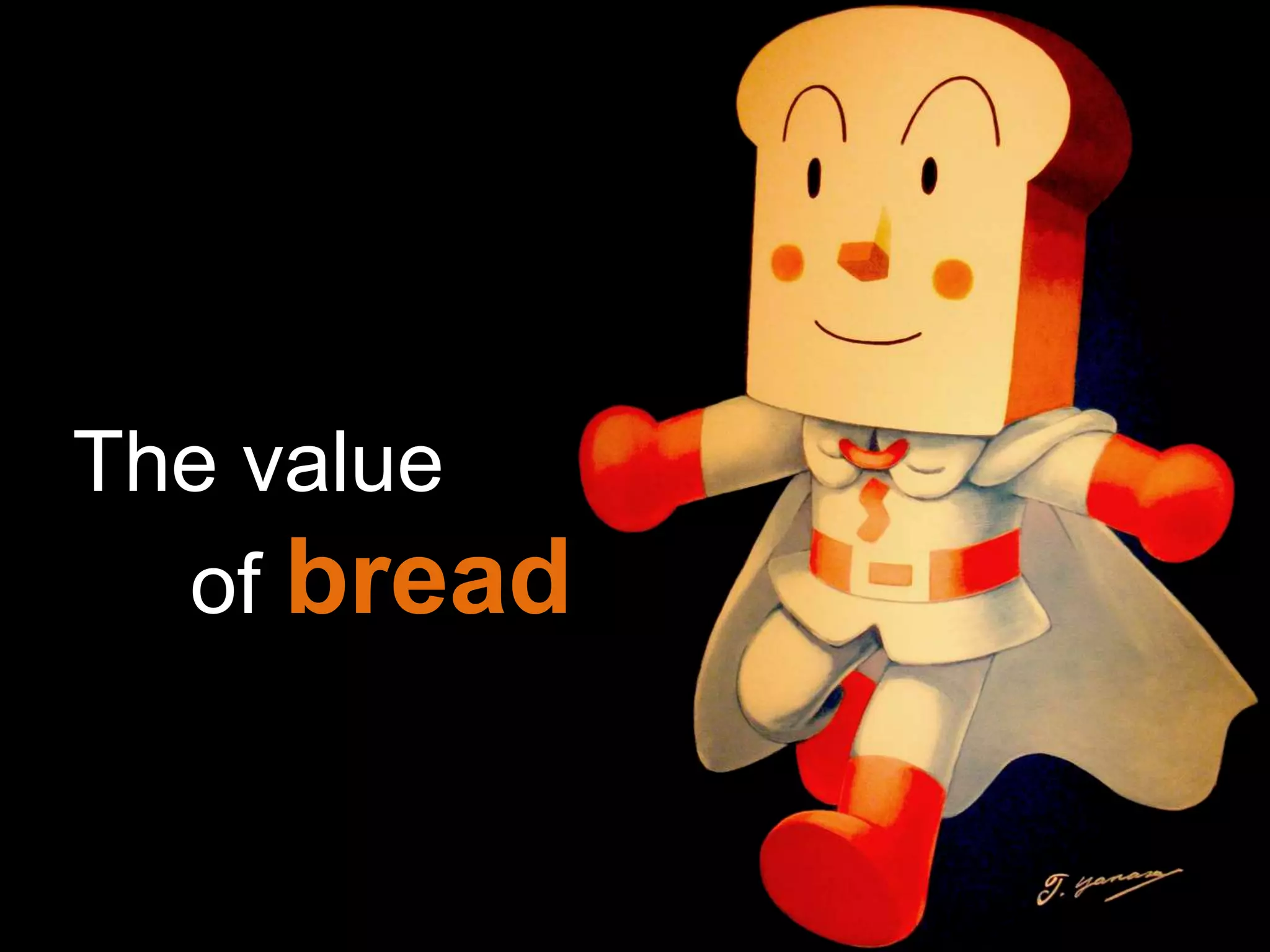The document discusses various ways to increase the value of bread beyond its basic nutritional and economic value. It suggests donating bread to those in need to save lives, creating interactive art projects using bread to generate funds for charity, and developing educational activities like observing ants to add entertainment value from a simple loaf. The goal is to think creatively about maximizing the impact and value of bread through sharing, community engagement, and bringing people together over a humble food staple.