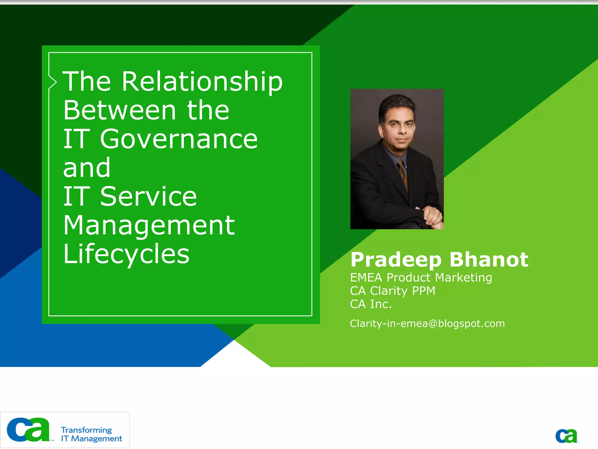 The document discusses the relationship between IT governance and IT service management lifecycles. It notes that both areas have evolved from being operations focused to becoming more risk and value focused. A key point is that IT governance and IT service management have similar drivers of business alignment, transparency, best practices, rigor, formality, policy and compliance. The document advocates taking a holistic view and creating a unified service model to bring more transparency and value to both IT and the business.