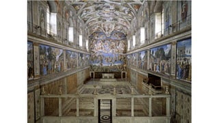 This document provides an overview of the history of Europe from the Renaissance to 1815, with a focus on the origins and arts of the Italian Renaissance. It discusses the rise of prominent city-states like Florence and Venice due to trade, and how the fall of Constantinople in 1204 contributed to the spread of classical learning in Italy. Key figures that helped launch the humanist movement like Petrarch and Dante are described. The emergence of Renaissance art in Florence is chronicled through early masters like Giotto, Donatello, Botticelli, and Michelangelo. Michelangelo's major works like the Sistine Chapel ceiling and St. Peter's Basilica are summarized.