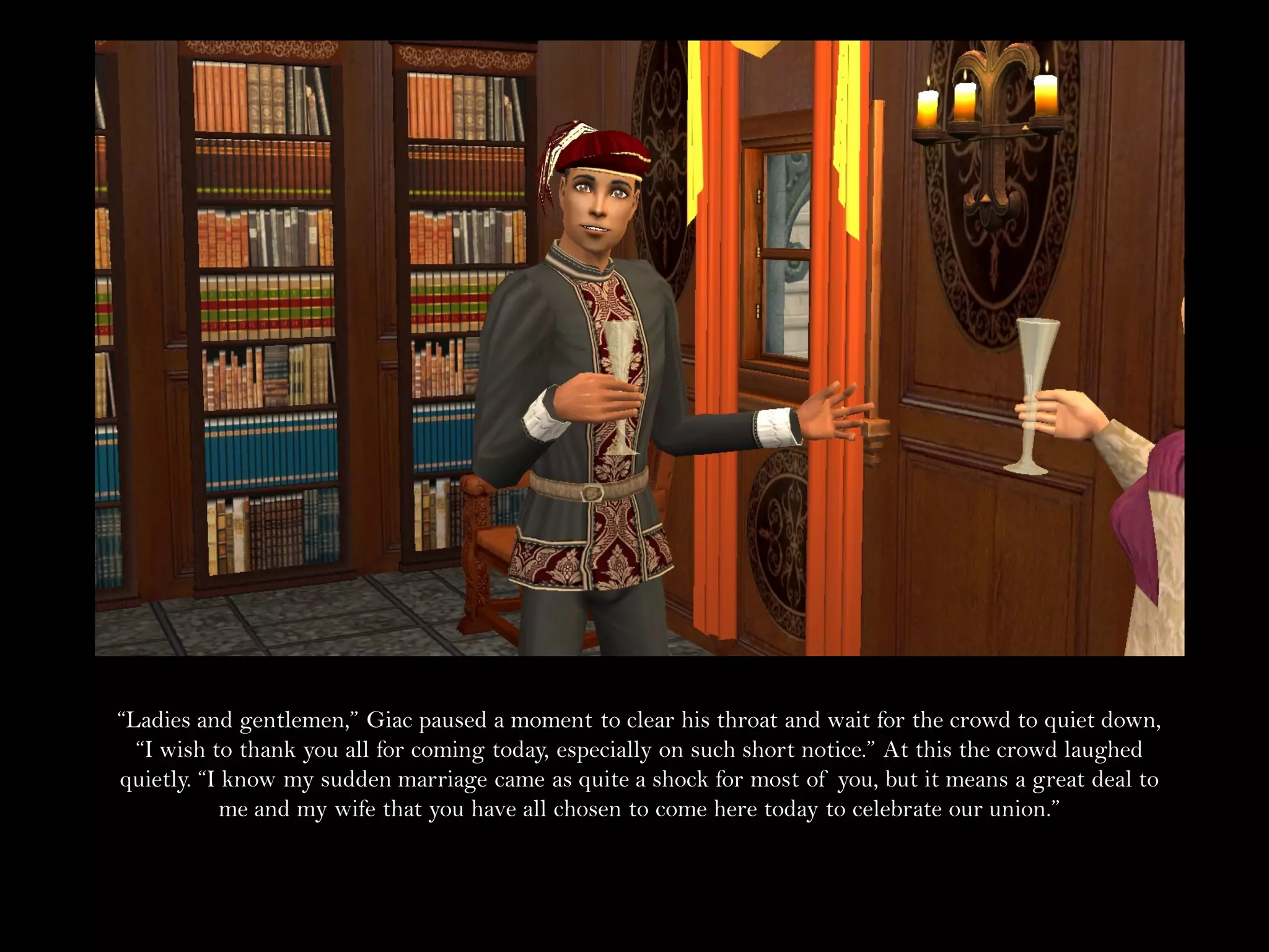 Giac presents his new wife Beatrice to the wedding guests gathered to celebrate their union. The party enjoys entertainment and dancing late into the night. As the festivities wind down, Giac and Beatrice retire while Lucio gives a toast wishing them happiness and many male children.
