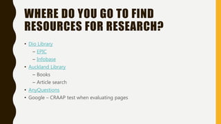 This document provides guidance on conducting research and avoiding plagiarism. It outlines resources for finding information such as libraries and search engines. It defines plagiarism using an example and explains how to properly paraphrase, summarize, and quote sources. Finally, it discusses the importance of citing sources using a referencing style like APA and keeping track of all information used.