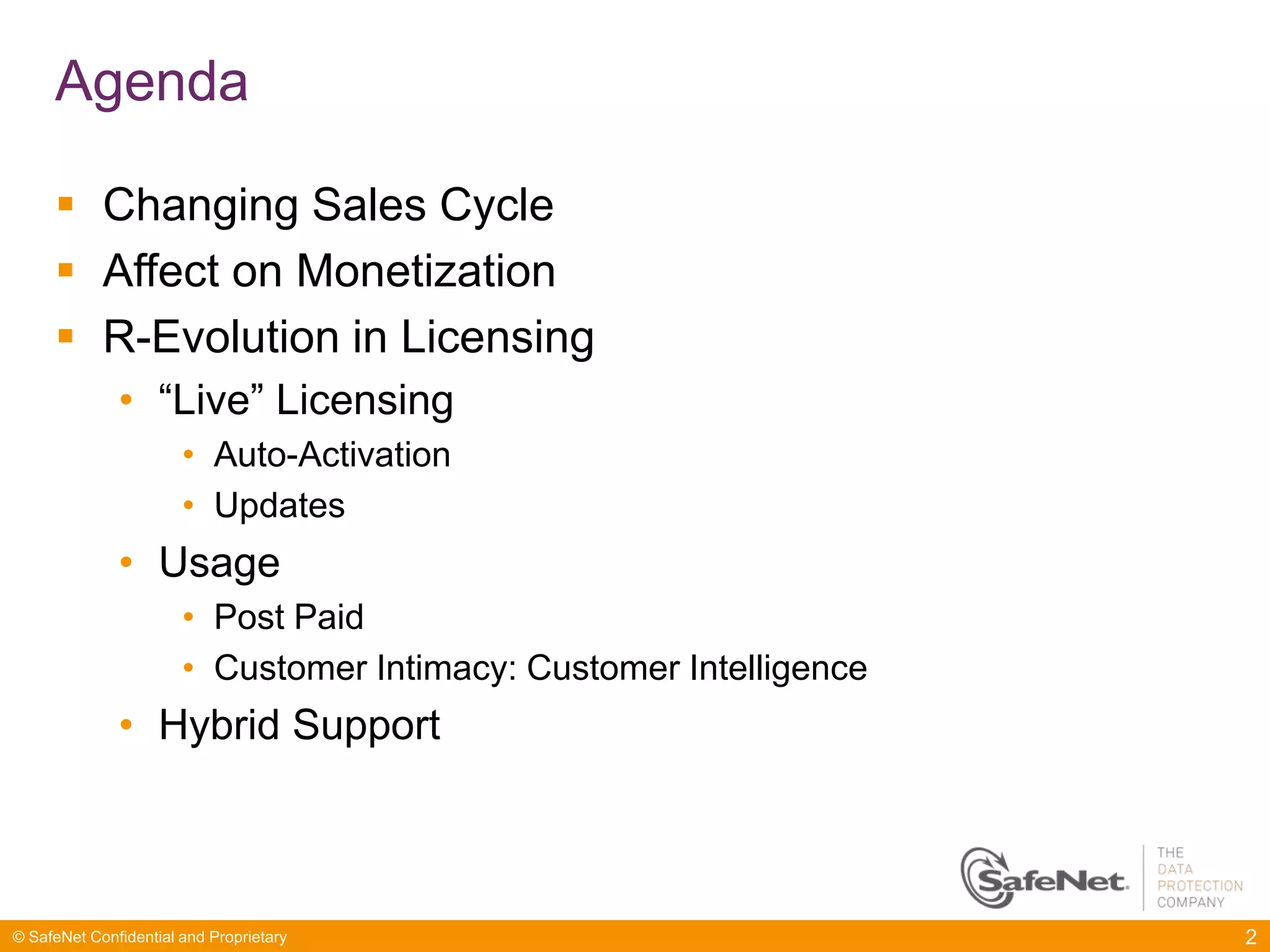 The document discusses how cloud licensing is revolutionizing traditional licensing models. It describes how cloud licensing allows for continuous, usage-based monetization through features like auto-activation and updates from a connected backend. This enables new licensing approaches like post-paid usage billing and harnessing usage data for customer intelligence. The document also discusses hybrid licensing approaches and how Sentinel Cloud Services provides a solution for feature-based provisioning, usage control, and analytics to support flexible cloud licensing.
