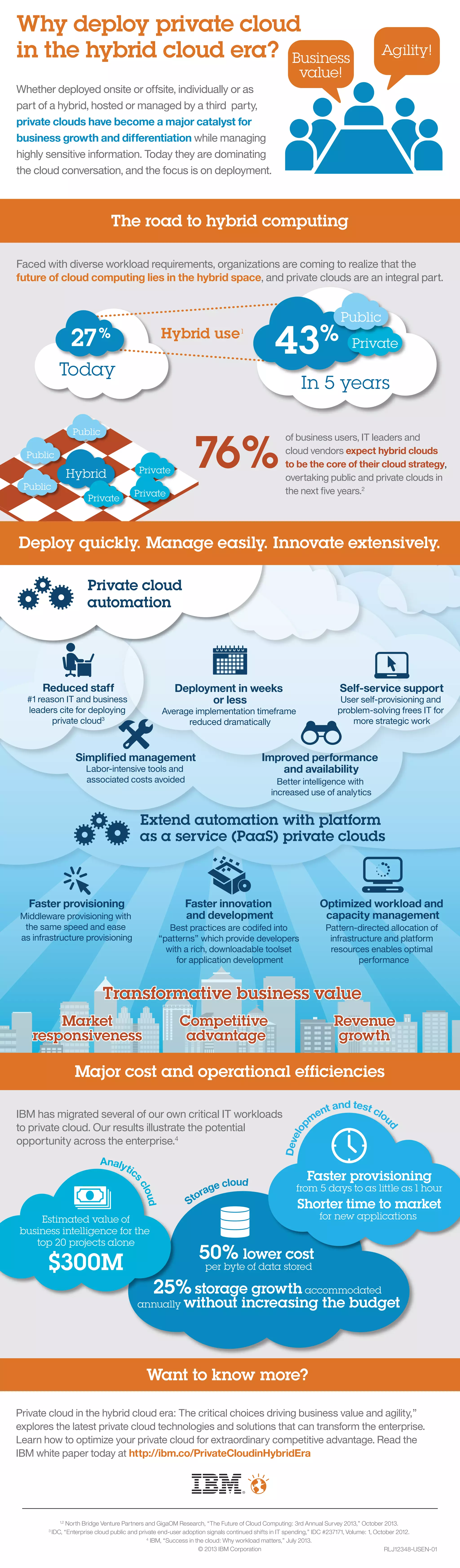 Private clouds have become widely used by organizations, whether deployed onsite or offsite, and are a major factor in business growth. As organizations realize the future of cloud computing lies in hybrid models, private clouds are seen as an integral part in combining private and public clouds. Deploying private clouds can provide significant benefits like 50% lower data storage costs, 25% annual storage growth without increased budgets, and faster provisioning times.