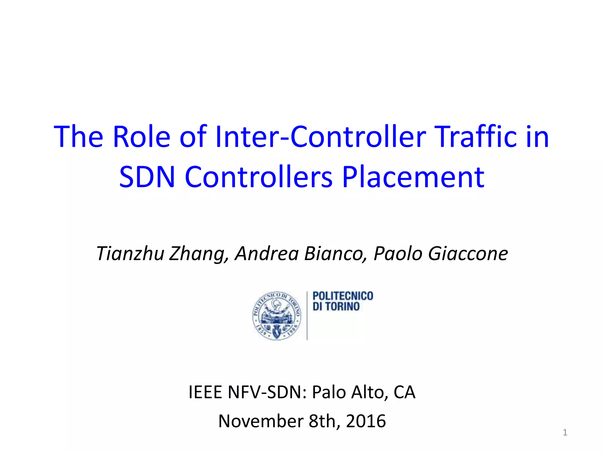 The document discusses the impact of inter-controller traffic on the placement of software-defined networking (SDN) controllers, highlighting the importance of consistency models for data synchronization among controllers. It emphasizes the trade-offs between single and multiple data ownership models and presents formulas for estimating reactivity perceived by switches due to interactions. The findings indicate that the choice of data owner and latency among controllers are critical for optimizing controller placement and enhancing network performance.