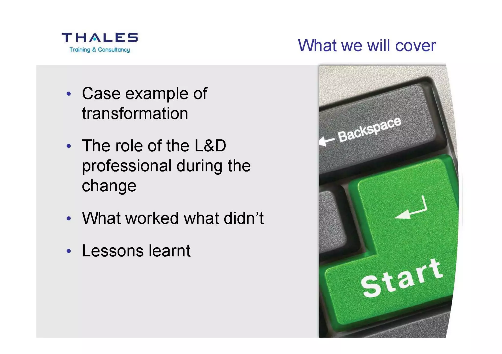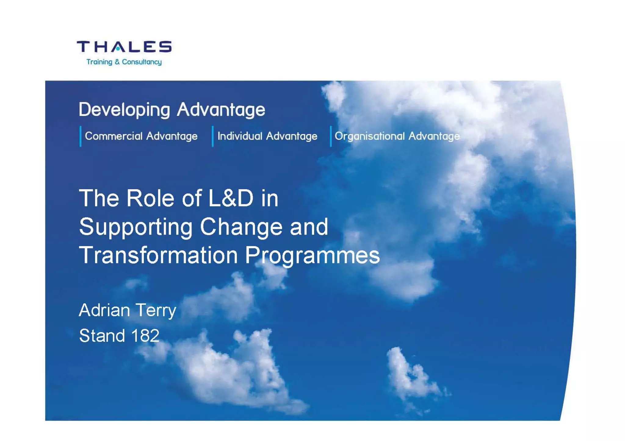 Adrian Terry, Thales Training & Consultancy, presents on how Learning & Development can support businesses through change and transformation programmes.