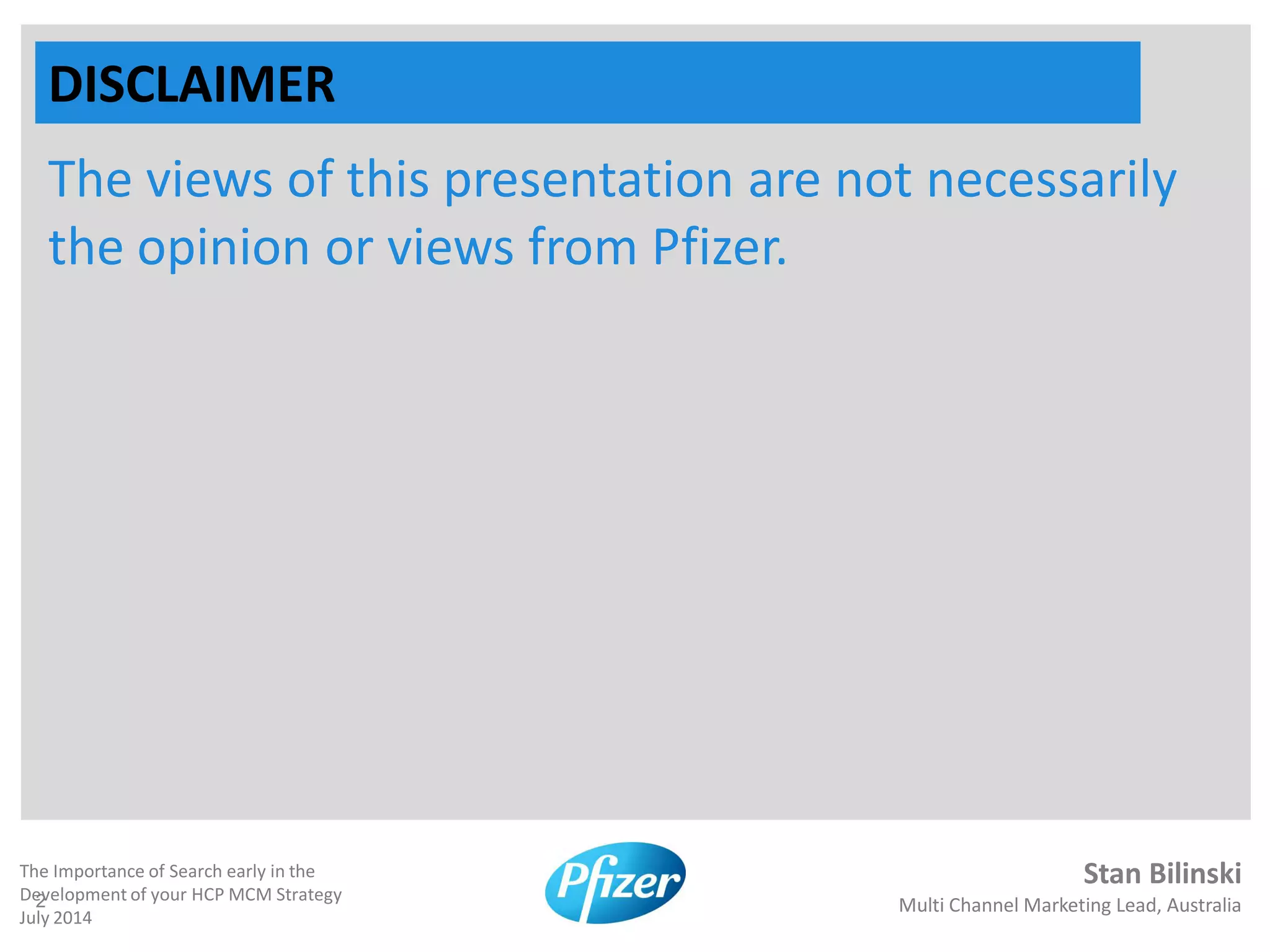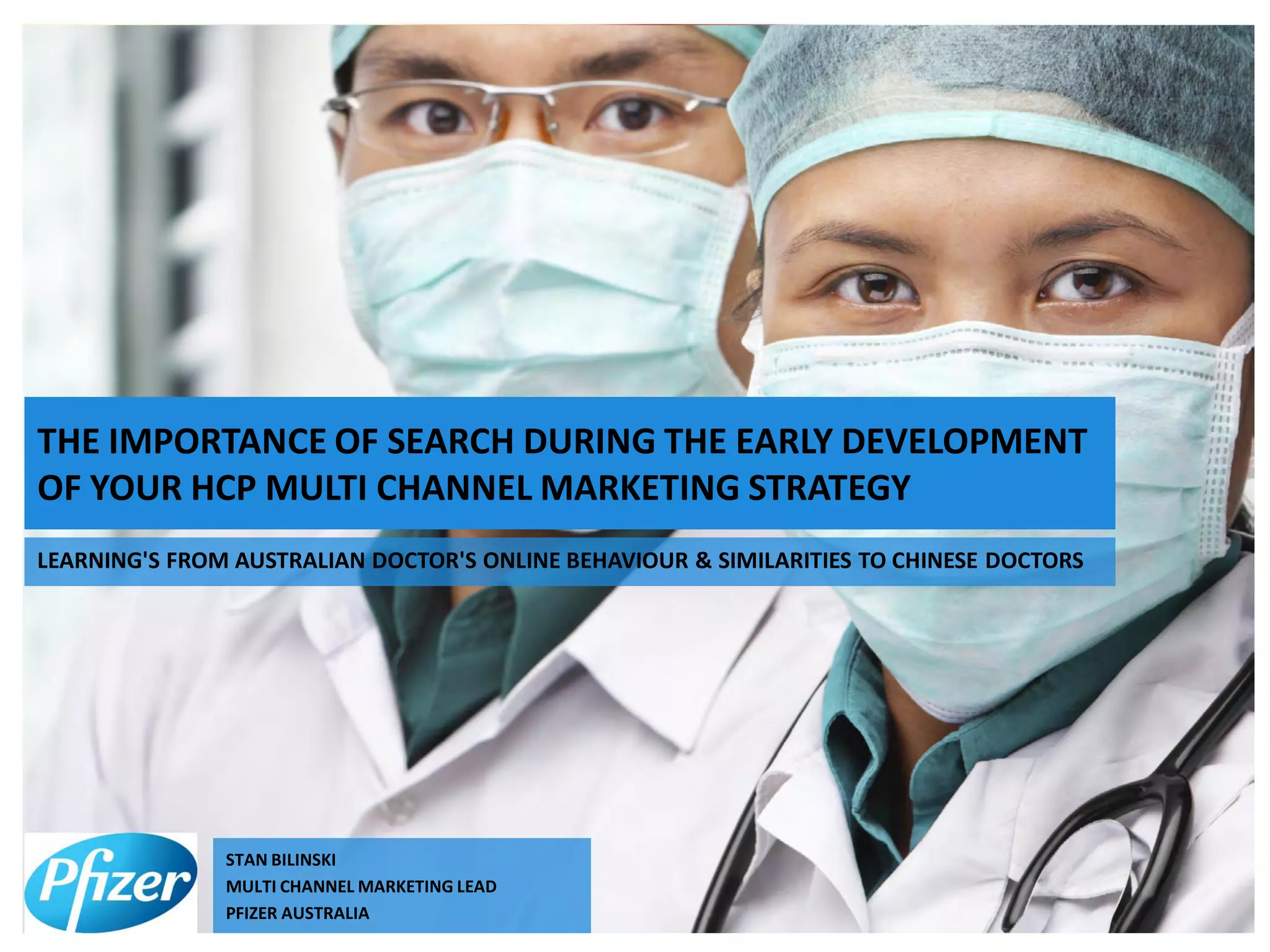 Stan Bilinski gave a presentation on the importance of search in developing an HCP multi-channel marketing strategy. He showed that doctors and patients extensively use search engines like Google to find health and medical information. Search has become doctors' primary online resource, especially on mobile. Bilinski advocated that pharmaceutical companies focus on inbound marketing through search to efficiently engage customers and drive them to online educational content and marketing channels.