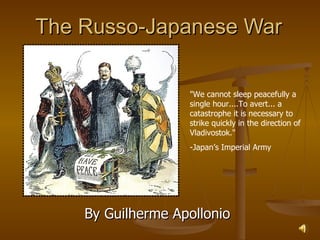 The document provides an in-depth summary of the Russo-Japanese War of 1904-1905. It describes the war's background and key events, including Japan's surprise attack on Russian forces, several decisive Japanese victories over Russian troops and naval forces, the siege of Port Arthur, and the eventual peace negotiations mediated by U.S. President Theodore Roosevelt. The war resulted in significant territorial gains for Japan and marked a major blow to Russian prestige and authority in East Asia.