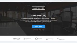 The document discusses the SaaS sales funnel and key metrics for tracking user conversion and engagement throughout various stages, including website users, trials, and paid users. It highlights the importance of partnerships in driving traffic and sales, demonstrating with examples of successful collaborations. Additionally, it emphasizes the significance of a communication strategy, timing for automation, and leveraging customer satisfaction for referrals.