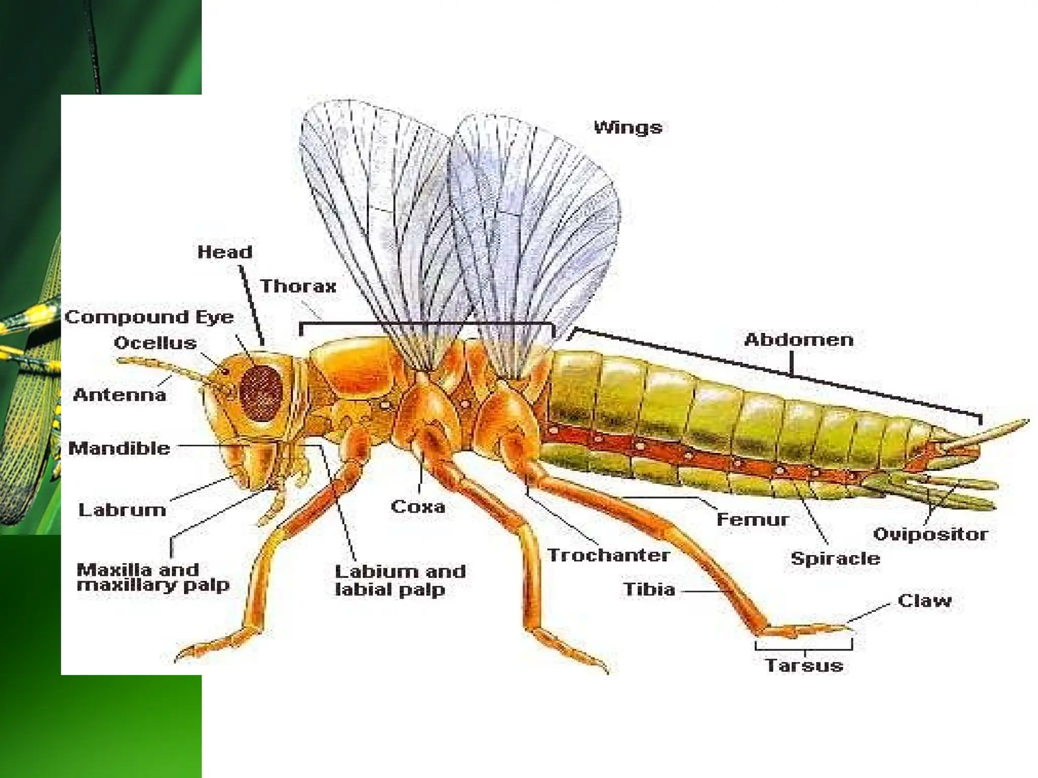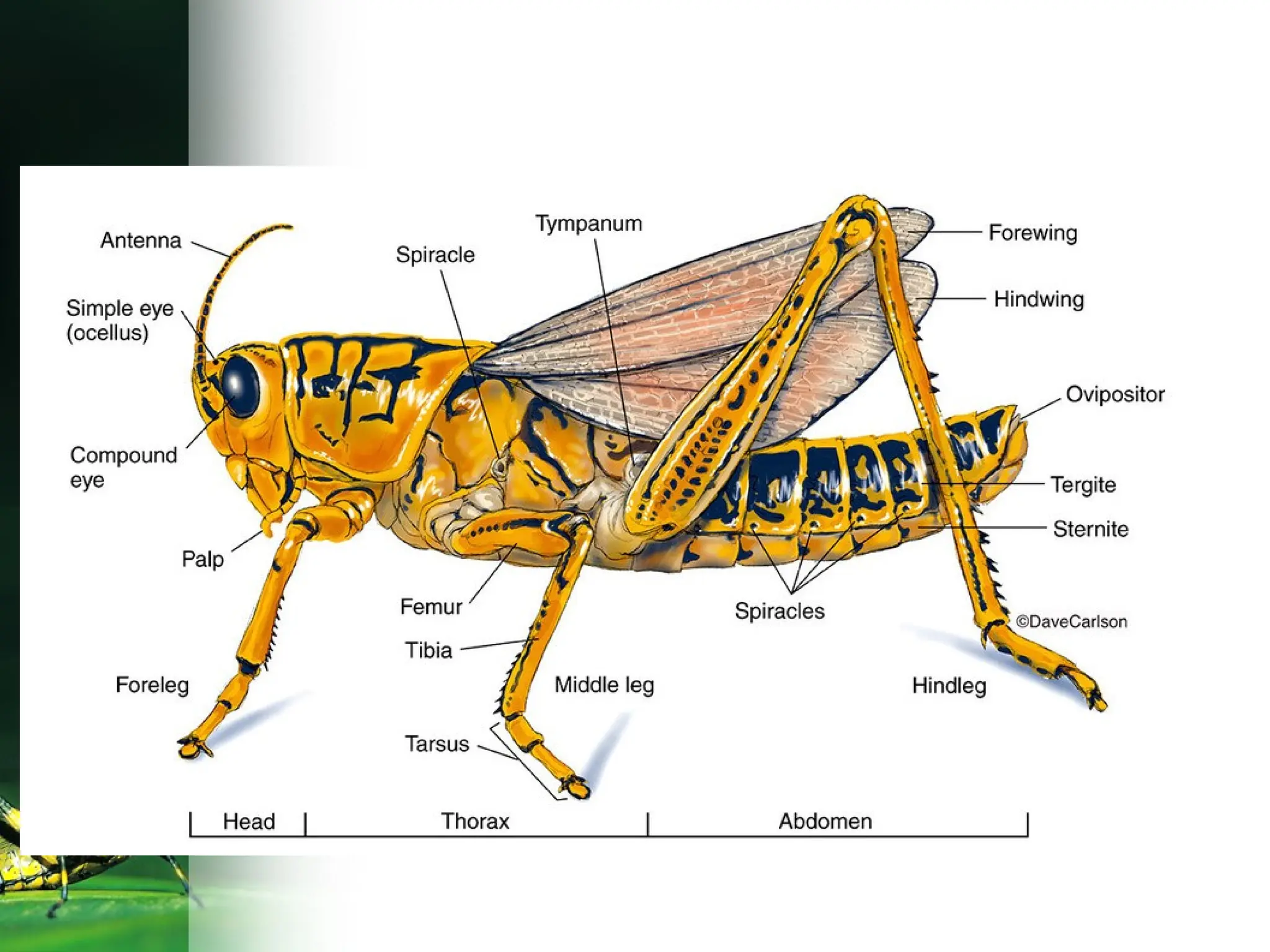 Insects have a segmented body plan, typically divided into three main parts: the head, thorax, and abdomen. The head contains sensory organs and mouthparts, the thorax bears wings and legs, and the abdomen houses digestive and reproductive organs. This segmentation allows for specialized functions and efficient body organization.