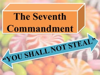 The Seventh Commandment prohibits stealing, demanding respect for others' property and fair distribution of goods. It emphasizes the practice of justice, charity, and social responsibility, calling for the return of stolen goods and moral economic systems. The commandment underlines the importance of integrity and the need for stewardship over earthly resources.