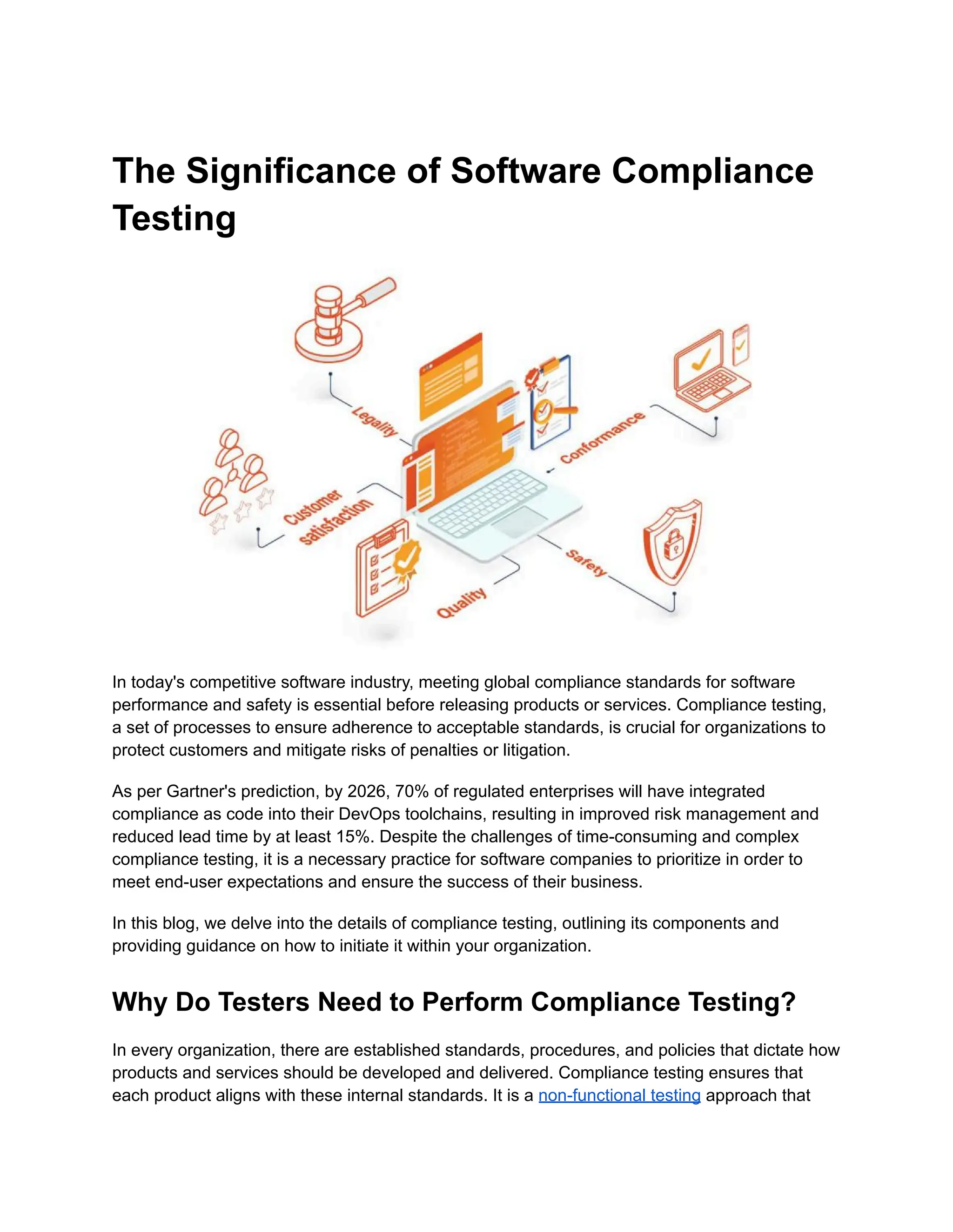 is widely recognized, non-functional testing, including compliance testing, is equally vital in